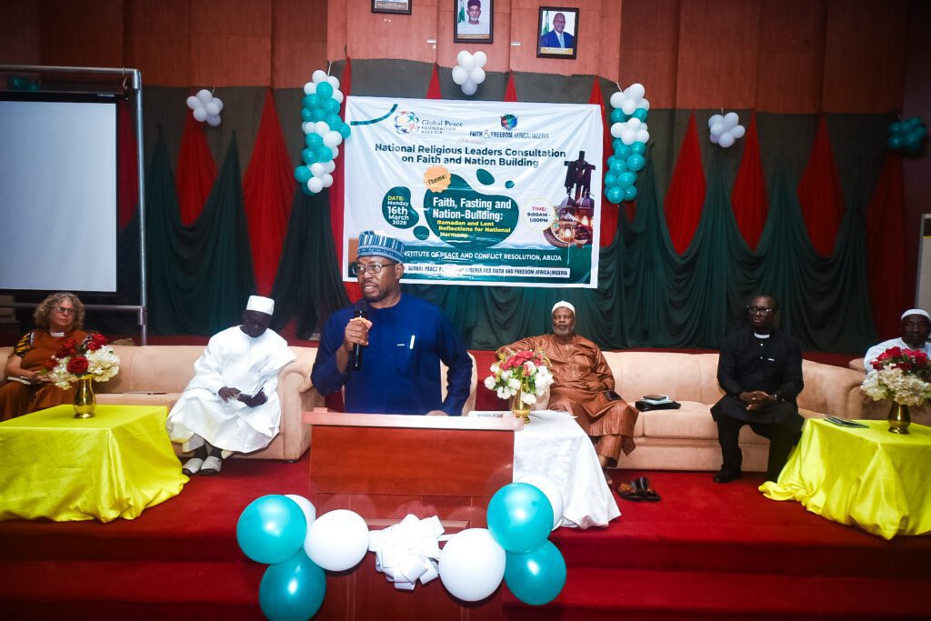 Over 100 religious leaders, policymakers, media practitioners, and youth convened in Abuja for the National Religious Leaders Consultation on Faith and Nation Building, organized by the Global Peace Foundation (GPF) Nigeria in partnership with Faith and Freedom Africa/Nigeria. The meeting took place on March 16, 2026, at the Institute for Peace and Conflict Resolutions (IPCR) in Abuja. Held during the overlapping seasons of Ramadan and Lent, the consultation provided a strategic platform for examining how faith can contribute to national cohesion, peace, and development.