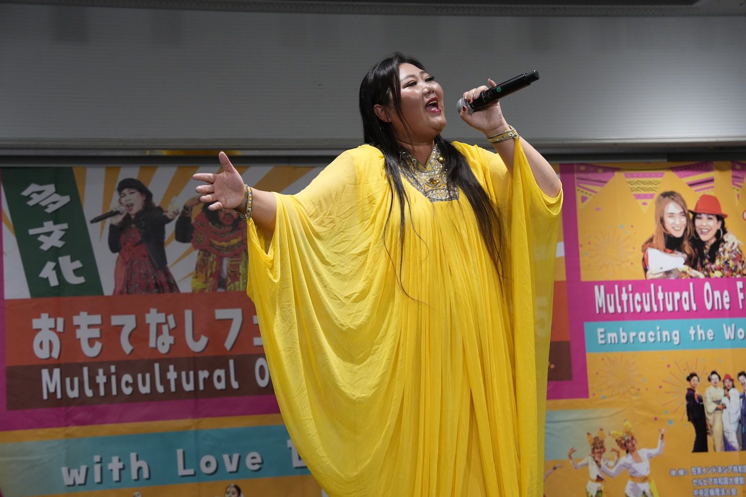 Singer Yolanda Tasico leads a celebration at the Multicultural One Family Festival 2025 held in Japan.